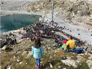 Quasi un migliaio di persone, in una splendida giornata di sole, ha raggiunto a piedi o in funivia quota 2.500, dove sorge il monumento voluto da Emilio Serra e di Kurt Steiner quaranta anni fa, per celebrare l’amicizia di coloro che un tempo si combatterono tra quelle vette e per riflettere sul valore dell'amicizia, oltre i confini, al di là delle bandiere.