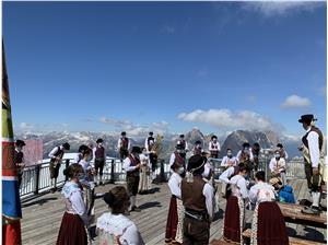 Le note della Mùsega Auta Fascia, la banda musicale dell'alta Val di Fassa, che comprende i comuni di Mazzin, Campitello e Canazei, hanno viaggiato tra le cime ancora innevate delle Dolomiti. Un concerto nato dalla voglia di ricominciare dopo il periodo di sosta forzata dovuto al Covid 19. Un momento di festa, per celebrare l’inizio della stagione estiva, ma soprattutto un tributo, come hanno spiegato i componenti della banda musicale, per ricordare chi ha sofferto, chi ha lottato, e con il quale hanno voluto manifestare la gratitudine verso tutti i Medici, a tutti gli Infermieri e Operatori sanitari, che con le loro forze e il loro enorme sacrificio per primi hanno acceso la speranza e hanno dimostrato che tutto è possibile.