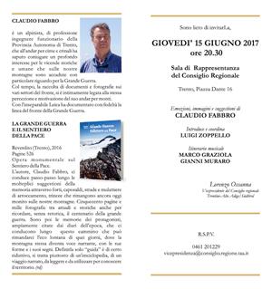 Sarà presentato domani giovedì 15 giugno, alle ore 20.30, nella Sala di Rapprsentanza del Consiglio regionale, in Piazza Dante a Trento, il libro: "La Grande Guerra e il sentiero della Pace".